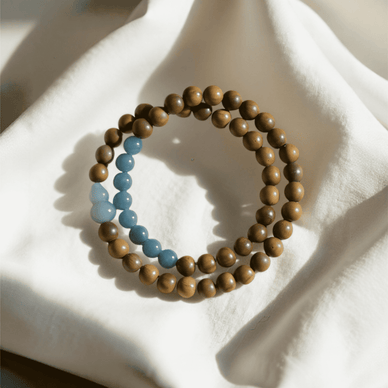 Blue Jade & Sandalwood Gourd Bracelet – Relaxation & Good Fortune