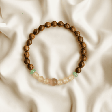 Find evening calm with the Golden Sandalwood & Green Dongling Jade Bracelet, a soothing accessory that blends grounding golden sandalwood with the serene beauty of Dongling jade to promote balance, tranquility, and mindful presence.