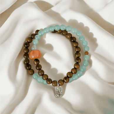 Ease into peaceful evenings with the Green Sandalwood & Dongling Jade Double-Layer Bracelet, a vintage-inspired design that combines grounding wood with soothing stone to help you release tension and restore balance after busy days.