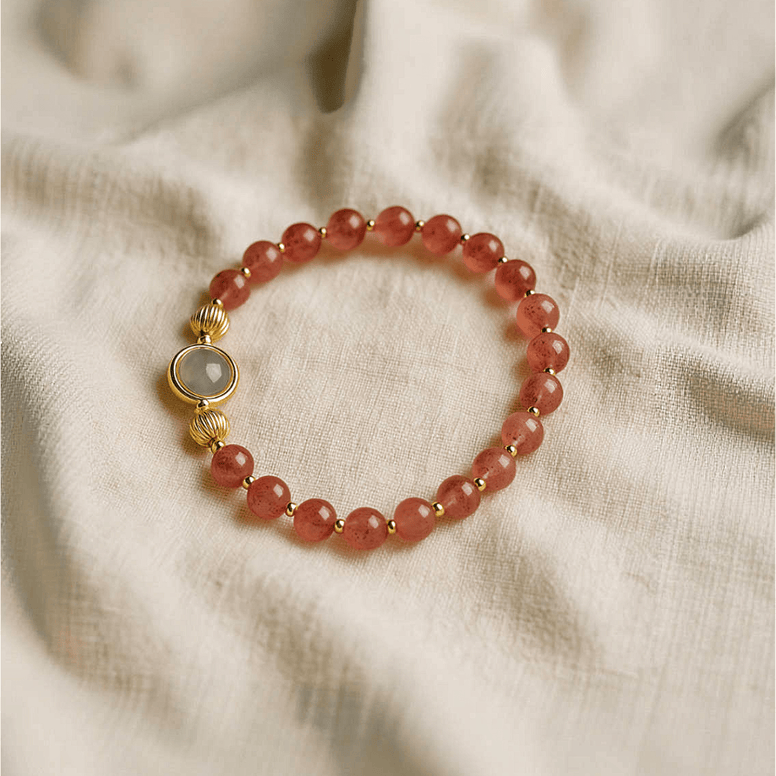 Strawberry Quartz & Gray Moonstone Bracelet – Nighttime Serenity